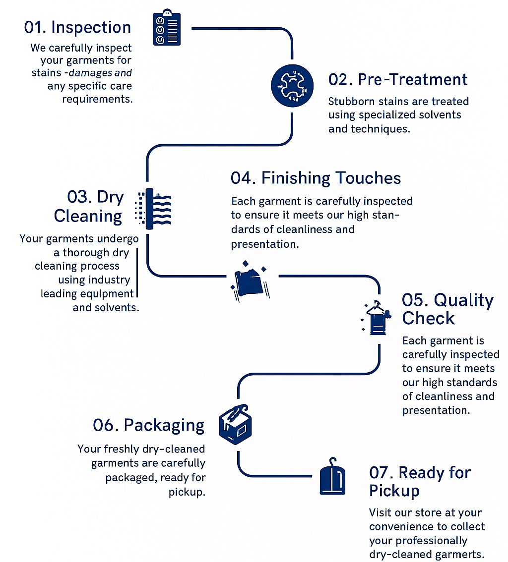 Our dry cleaning process uses eco-friendly solvents that remove stains and odors without exposing your clothes to water. This method keeps fabrics in shape, soft, and vibrant while extending their lifespan. Perfect for suits, sarees, gowns, coats, and formal wear — our team takes extra care to hand-check each garment before and after cleaning to ensure a flawless finish.