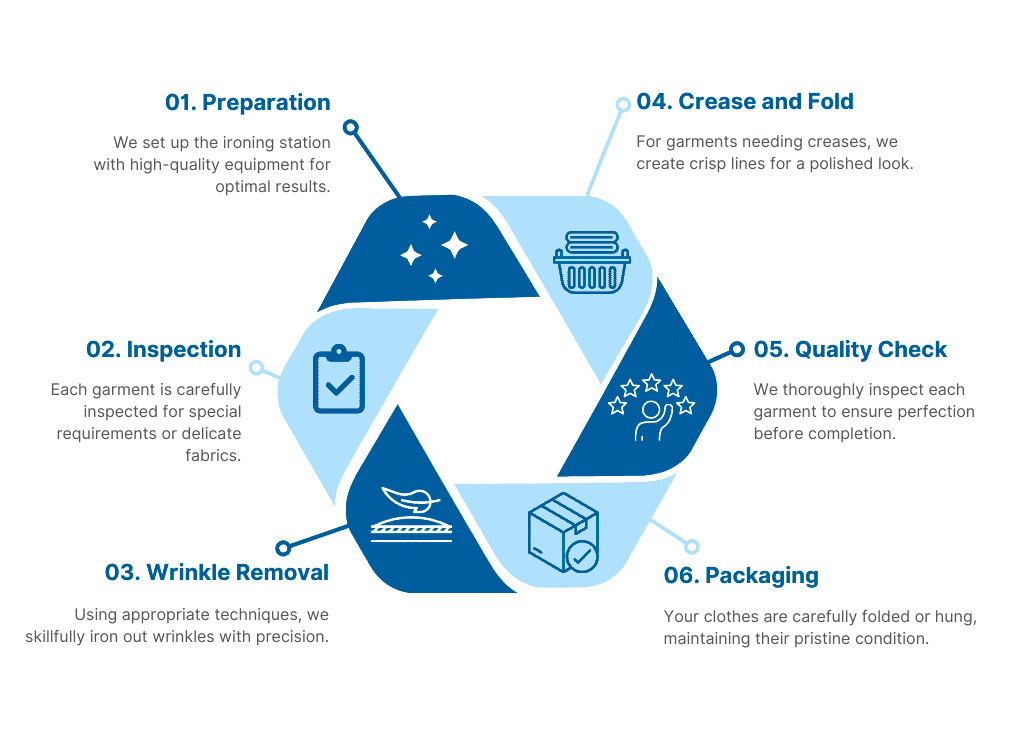 We provide both steam and dry ironing to keep your clothes wrinkle-free and sharp. From daily wear shirts and trousers to formal dresses and uniforms, our ironing service ensures your garments are ready to wear straight out of the bag. Each item is pressed at the right temperature for its fabric type, preventing burns or shine marks.